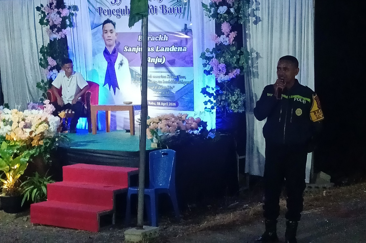 Kefamenanu – Bhabinkamtibmas Kelurahan Maubeli, Aipda Andi Panie, memberikan himbauan kamtibmas kepada masyarakat saat menghadiri acara syukuran sidik baru di Kelurahan Maubeli, Kecamatan Kota Kefamenanu, Kabupaten Timor Tengah Utara (TTU), NTT, Rabu (8/4/2026).