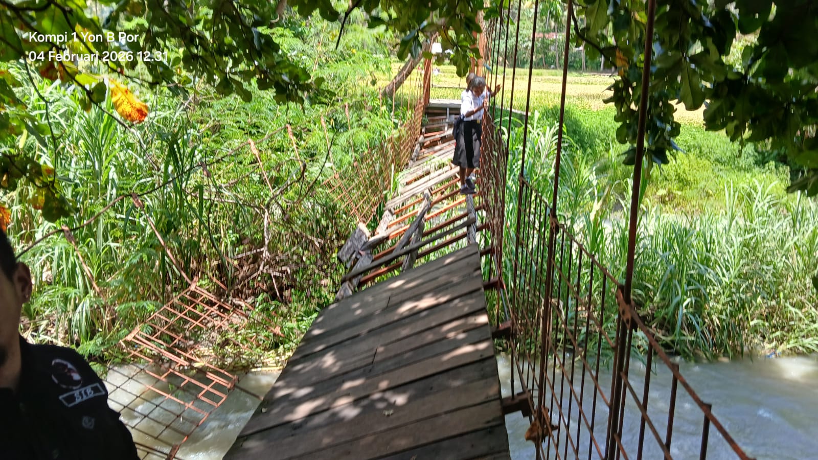Sebelumnya, jembatan tersebut mengalami kerusakan akibat tertimpa pohon tumbang serta putusnya besi sling penyangga, sehingga membahayakan keselamatan warga dan menghambat aktivitas masyarakat.