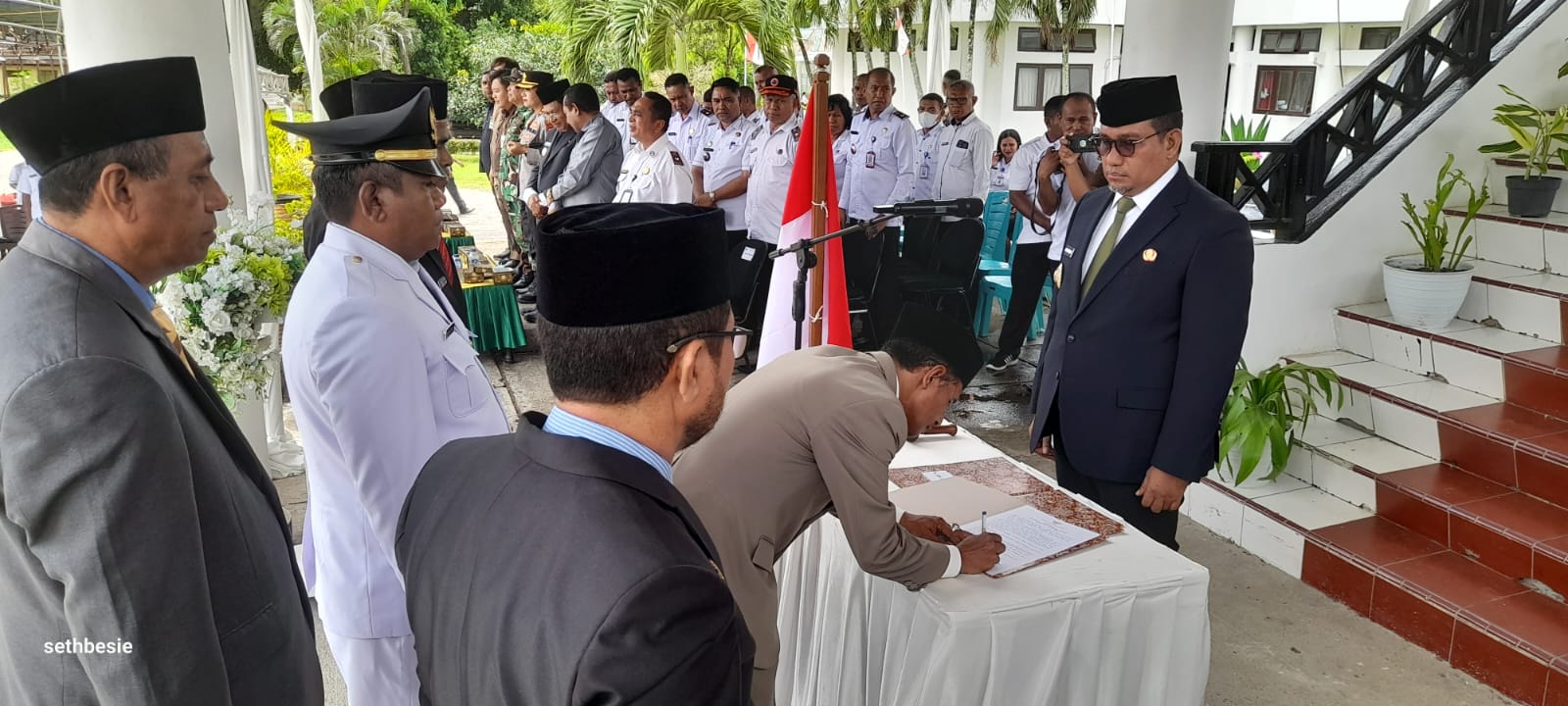 Prosesi pengambilan sumpah dan janji jabatan berlangsung khidmat di halaman Kantor Bupati TTU, Rabu (21/1/2026), dihadiri oleh Wakil Bupati Kamilus Elu, Ketua DPRD Kristoforus Efi, dan Sekda Fransiskus Bait Fay.